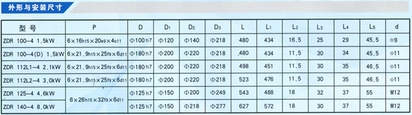 ZDR系列電動機(jī)為封閉式結(jié)構(gòu),防護(hù)等級為IP44,冷卻方式為自冷式IC0141,絕緣等級有B級和F級兩種。